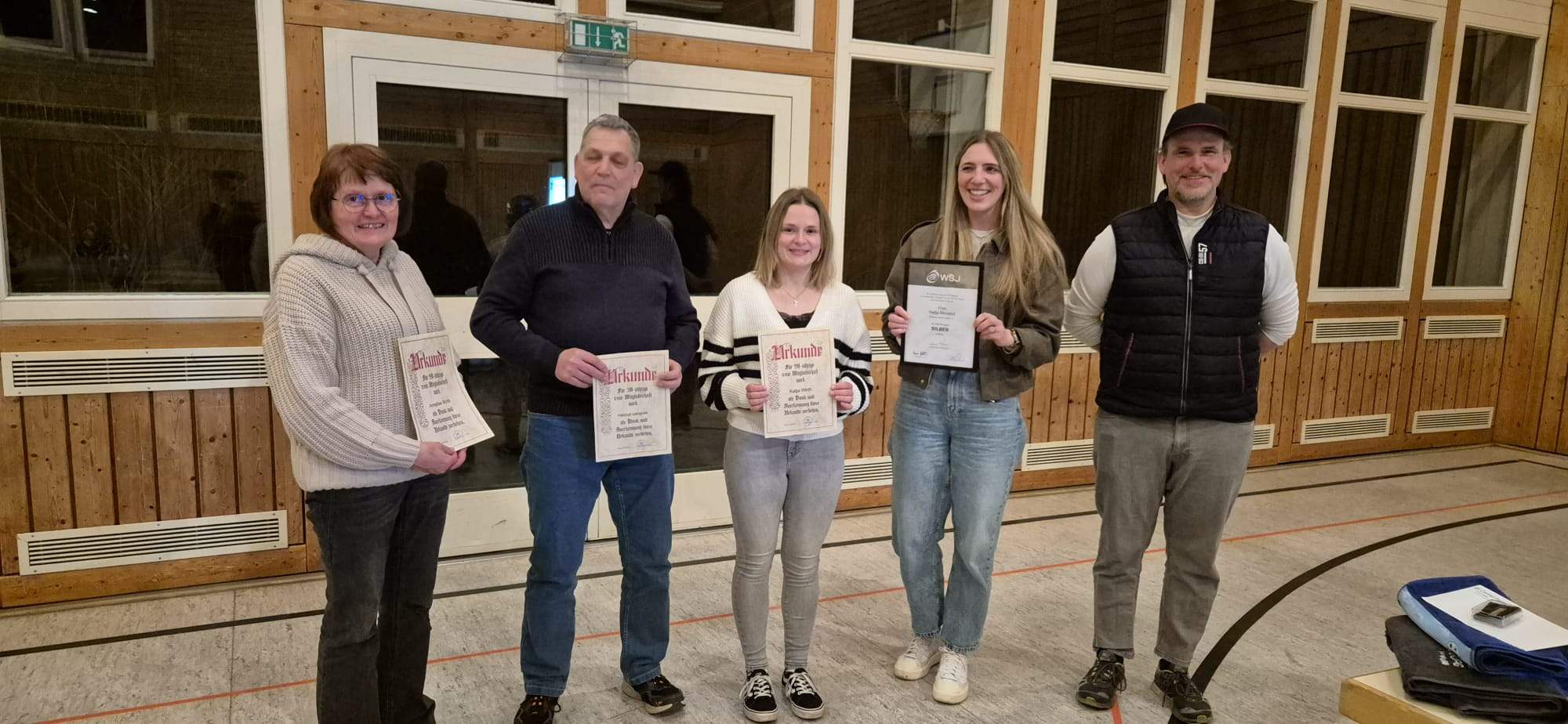 1. Vorstand Andreas Dorn, Mitgliederverwaltung Sonja Wirth, 1. Jugendleiter Louis Dimmler, 1. Beisitzer Bernhard Schemmmel, Kassenprüferin Marina Käppeler, Kassenprüferin Nadja Messmer und Chronistin Maria Schemmel.